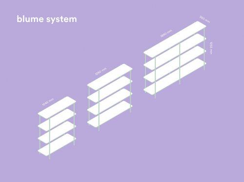Blume System - это мебель, которая перекликается с изысканным профилем в форме цветка из экструдированного алюминия одноименной коллекции сидений Blume. Четырехуровневый стеллаж со стальной поддержкой полок, скрепленной алюминиевыми ножками без видимых винтов, чтобы подчеркнуть драгоценные детали ножек, будучи одновременно устойчивым и прочным. Алюминий анодируется в различные виды отделки или покрывается различными цветами. Это в сочетании с элегантными полками из композитного мрамора или других инновационных материалов, обеспечивает максимальную индивидуальность и универсальность.