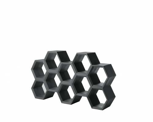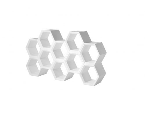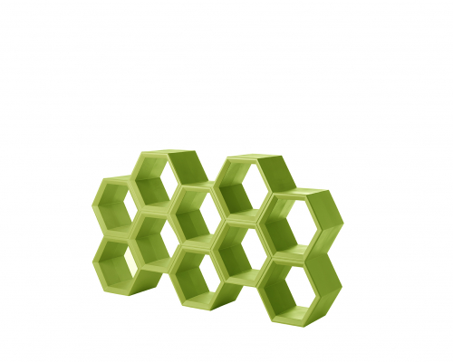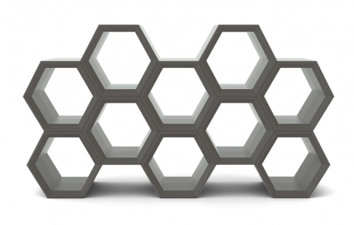 Hexa - это модульный книжный стеллаж, выполненный из полиэтилена и вдохновленный природой. Его ячеистая структура позволяет различным образом связывать и взаимодействовать, создавая объем, который гибко интегрирует отдельные модули в любую окружающую среду. Шестиугольная форма Hexa имеет двойное свойство: эстетическое и функциональное; шестиугольник представляет собой обычную и элегантную форму, но он также имеет две горизонтальные стороны для размещения большого количества объектов.