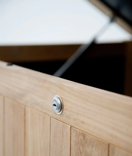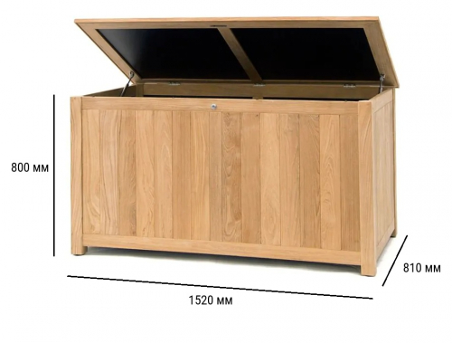 Сундук выполнен из тика. Тиковое дерево - это превосходный материал, известный во всем мире красотой текстуры поверхности и превосходными физическими характеристиками. Это прочная, водостойкая древесина, устойчивая к соленым средам и разным погодным условиям.