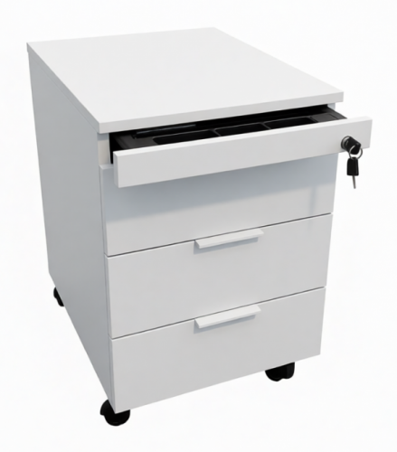 Кoмпактная мобильная тумба на резиновых колесиках из серии Cabinets - идеальное решение для хранения канцелярии и поддержания порядка на рабочем месте. Три выдвижных ящика и встроенный замок обеспечивают безопасность документов и удобный доступ к инструментам офиса и творческой мастерской.