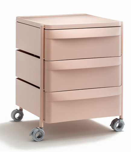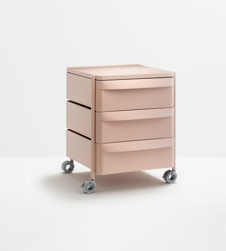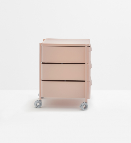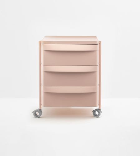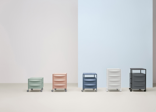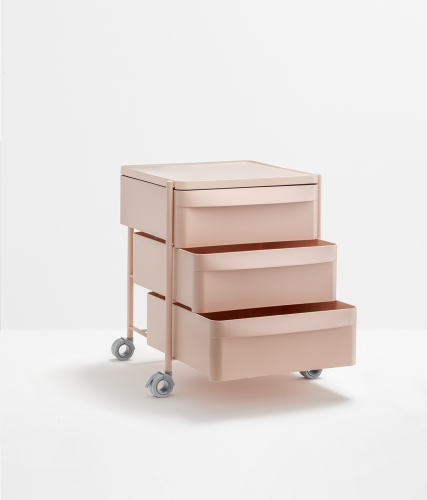 Boxie - это система хранения с минималистичными линиями, примечательная своей легкостью, которая гарантируется стальным каркасом с покрытием. Она оснащена выдвижными ящиками, чередующимися со столешницами, изготовленными из полипропилена. Система оснащена тремя выдвижными ящиками со встроенной ручкой, а также поворотными и запирающимися колесиками.