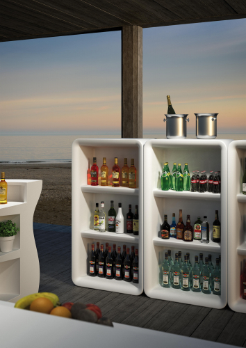 Отдельно стоящая витрина, используемая отдельно, также может использоваться как книжный шкаф и/или контейнер. В сочетании с барной стойкой Bartolomeoподходит для размещения кухонной утвари, особенно бутылок и стаканов.