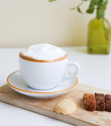 Кофейная пара для двойного капучино состоит из блюдца и чашки: