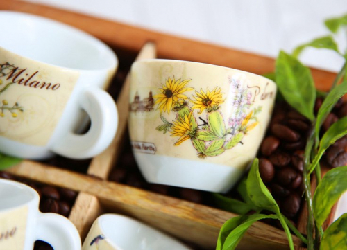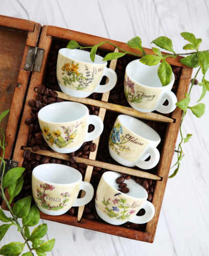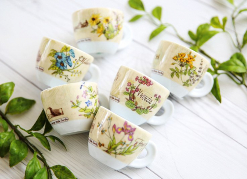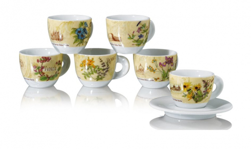 Коллекция Edex Italia Fiorita представляет собой 6 различных деколей, на которых представлена цветущая Италия. Шесть самых главных городов: Рим, Флоренция, Палермо, Милан, Венеция, Неаполь, и изображение произрастающих там цветов. Окунитесь в атмосферу цветущей Италии с чашками Edex Italia Fiorita.