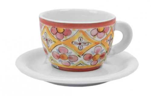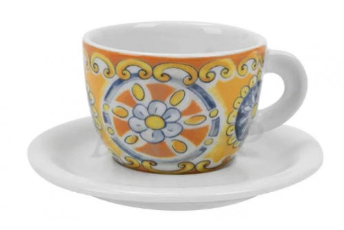 Декорированная фарфоровая чашка для капучино с блюдцем из коллекции Capriccio Italiano вдохновлена средиземноморскими красками с мотивами растений и природы для исключительного наслаждения вкуснейшим кофе. Рисунок обжигается при экстремальных температурах, что позволяет ему полностью расплавиться в глазури, в результате чего получается гладкая отделка, полностью устойчивая к царапинам или агрессивным моющим средствам.