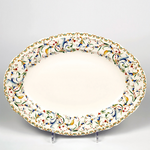 Блюдо из фаянса, которое сочетает в себе старинные французские традиции и эксклюзивный декор. Роспись сделана исключительно вручную. Каждое изделие отличается яркими красками, формами и цветами. Любой шедевр Gien украсит Вашу обыденную трапезу, внесет роскошь и изящество в Вашу жизнь.
