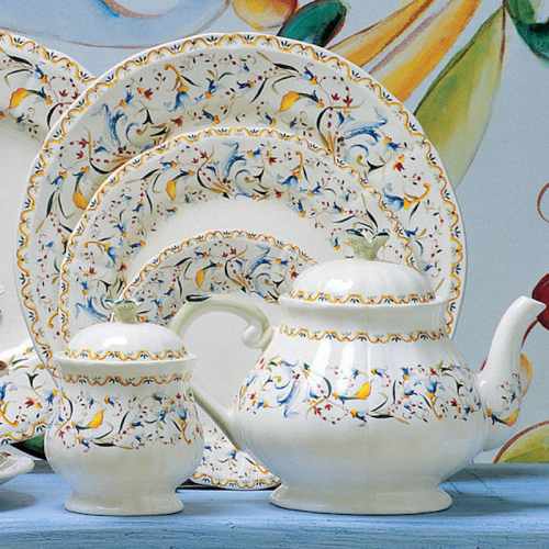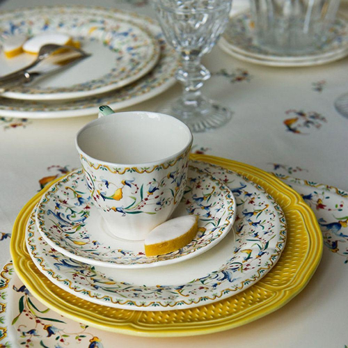 Классические изящные арабески коллекции Toscana, нанесенные вручную, - давний фаворит Gien. Тщательно проработанные изделия украшены элегантными завитками, разноцветными рамками и праздничными цветами, что напоминает трапезу в Тоскане в духе эпохи Возрождения. При создании рисунка коллекции Toscana современные мастера обращались к архивным материалам Gien и черпали вдохновение из эскизов, написанных еще в 1875 году.