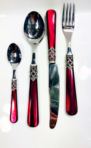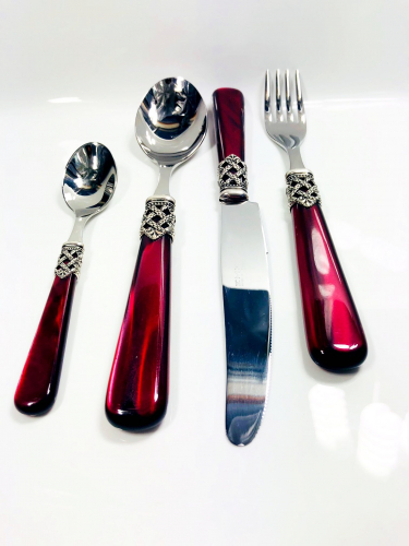 Роскошный набор столовых приборов Ginevra от итальянской компании EME станет прекрасным дополнением к интерьеру в классическом стиле. Приборы сделаны из высокопрочной нержавеющей стали, а их рукоятки украшены перламутром насыщенного бордового цвета. Ginevra - это изысканный набор столовых приборов в имперском стиле, который можно узнать по тонкой резке на наконечнике с характерным ажурным плетением в старинном стиле. Утонченность ковки этих столовых приборов подчеркивается раздуванием наконечника в верхней части, куда вставляется полированная до зеркального блеска деталь из нержавеющей стали. Рукоятка с перламутровым эффектом и мягкими формами отличается эксклюзивным акриловым материалом. Эти детали придают коллекции Ginevra эксклюзивную аристократическую элегантность. Ginevra с изысканным и вневременным дизайном - это завершающий штрих к любому сервированному столу.