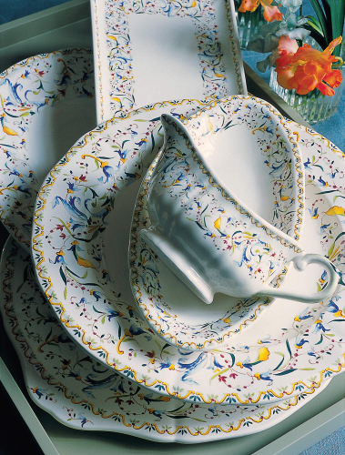 Коллекция Toscana с изящными цветными арабесками. Все тепло и элегантность культуры Тосканы отражены в этом классическом фаянсовом дизайне. При создании рисунка коллекции Toscana современные мастера обращались к архивным материалам Gien и черпали вдохновение из эскизов, написанных еще в 1875 году. Цветочный орнамент и насыщенные цвета коллекции напоминают флорентийские сады эпохи Возрождения. Классический стиль коллекции актуален вне времени.