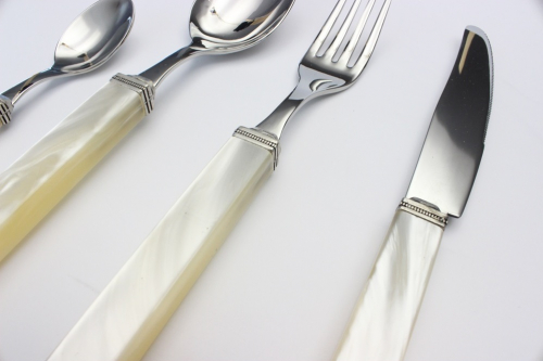Столовые приборы Kilim от итальянской компании EME станут прекрасным дополнением к роскошному интерьеру в классическом стиле. Они сделаны из высокопрочной нержавеющей стали, а их рукоятки украшены перламутром цвета слоновая кость.