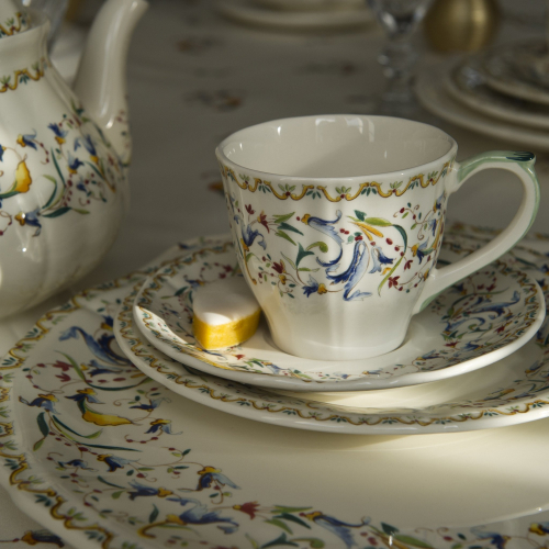 Коллекция Toscana с изящными цветными арабесками. Все тепло и элегантность культуры Тосканы отражены в этом классическом фаянсовом дизайне. При создании рисунка коллекции Toscana современные мастера обращались к архивным материалам Gien и черпали вдохновение из эскизов, написанных еще в 1875 году. Цветочный орнамент и насыщенные цвета коллекции напоминают флорентийские сады эпохи Возрождения. Классический стиль коллекции актуален вне времени.