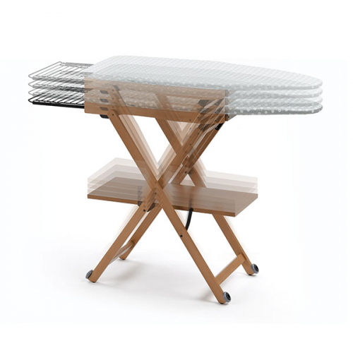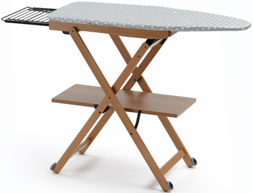 Практичная гладильная доска Stirocomodo от итальянской фабрики Arredamenti Italia (ARiT) станет отличной помощницей для настоящей хозяйки. Она отличается стильным дизайном и особым удобством эксплуатации. Каркас изделия выполнен из высококачественной древесины бука, рабочая поверхность сделана из оцинкованной стали и покрыта натуральным хлопком. Для удобства она снабжена вместительной полкой для вещей и выдвигающейся подставкой для утюга.