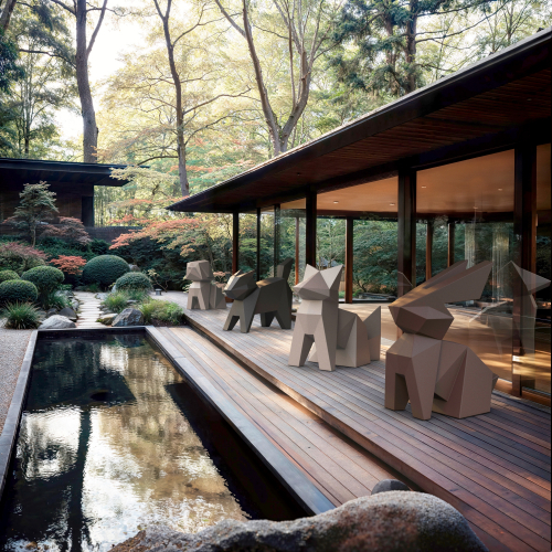 Коллекция Origami студии Vondom, в которой тысячелетняя традиция японского искусства складывания бумаги сочетается с авангардом современного дизайна. Вдохновленная простотой и изысканностью оригами, эта коллекция воплощает суть упрощённой геометрии в атмосфере природы через изысканный выбор животных и гранёных ваз. Каждое изделие, результат кропотливого процесса проектирования, не только передаёт внутреннюю красоту геометрических форм, но и предлагает чувственный опыт, где игра света и тени создаёт захватывающие визуальные эффекты.
