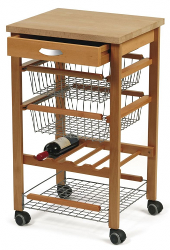 Кухонный островок на колёсиках Arturo от итальянской компании Arredamenti Italia (ARiT) сочетает в себе всё, что необходимо современной хозяйке. Он оборудован компактной столешницей, большим ящиком для столовых приборов, вместительными корзинами для продуктов, на которых есть особое порошковое покрытие, и специальной полкой для бутылок.