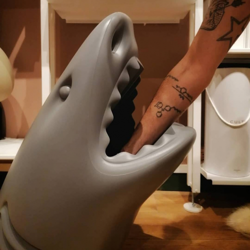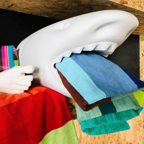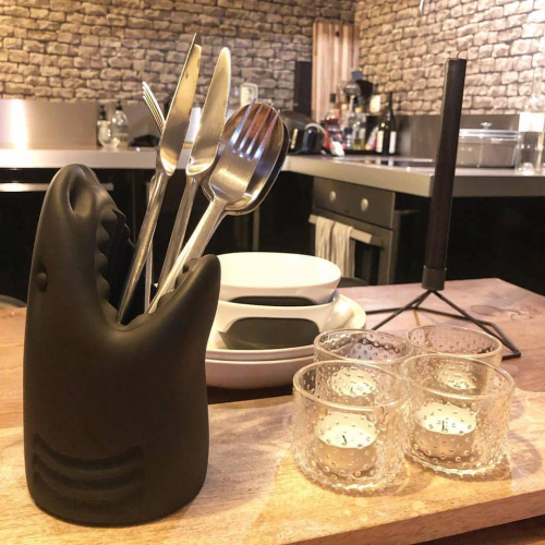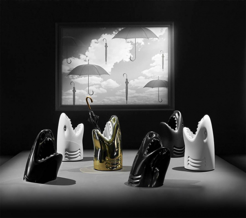 Это фантастическая история, рассказанная дизайнером Job Smeets об акуле: "Mr Holder был акулой, которая любила плавать, но не могла это сделать. Он был осмеян всеми остальными акулами, которые называли его "скучной маленькой девочкой". Бедняжка! Тогда два знаменитых дизайнера со своей суперсилой переосмыслили самые простые предметы интерьера и превратили Mr Holder в Killer - необычную подставку для зонтов, спасающую его от печальной судьбы."