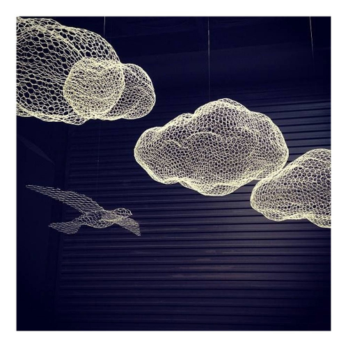 «Моей отправной точкой было желание и видение заполнить большие пространства своим символическим и поэтическим повествованием. Коллекции Clouds и Birds - результат этого видения: скульптуры из металлической сетки без внутренней структуры, где игра присутствия и отсутствия становится поэтическим элементом работы. Металлическая сетка, которая обычно представляет собой скрытый материал, используемый лишь в качестве внутреннего каркаса скульптур, обретает в этих предметах собственную красоту и трансформируется в фигуры и предметы поэтического мира. Птицы висят на нитке, играют с воздухом и светом, рассказывая всегда разные истории.» - Бенедетта Мори Убальдини.