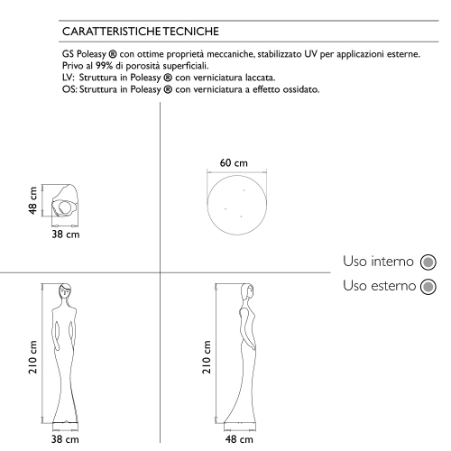 Скульптура изготовлена из материала Polyeasy - новый пластиковый материал, запатентованный фабрикой Myyour. Он представляет собой линейный полиэтилен, в котором практически отсутствует поверхностная микропористость. Прочный, долговечный, моющийся материал, поверхность которого остается блестящей, а цвета - яркими с течением времени.