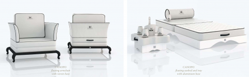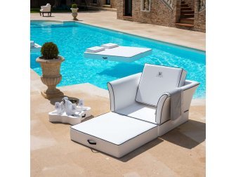 Начиная с культовой линейки моделей Canopo, коллекция Samuele Mazza представляет еще один шаг вперед в плане садовой мебели. Предложение представляет собой линию плавающей мебели, идеально соответствующую стилю культовой серии Canopo. Сценическое присутствие, комфорт и практичность использования роскошных предметов мебели как в воде, так и на суше, изготовленных из экологически чистых и стойких материалов. Плавающий столик-поднос класса люкс дополняет роскошный отдых в бассейне или на море, также идеально подходит для релаксации в лаунж зоне возле бассейна, на пляже или яхте.