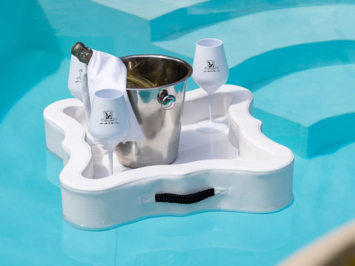 Плавающий столик-поднос мотивирует желание загорать, пить или расслабляться в воде, не промокнув. Такой поднос является роскошью не только внутри бассейнов, но его также можно использовать на суше. На самом деле, можно перемещать мебель в воде и из воды и использовать ее в полной релаксации для принятия солнечных ванн или наслаждения напитком.