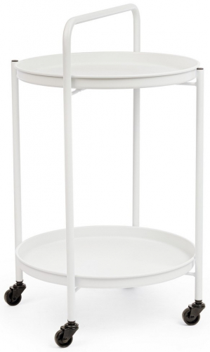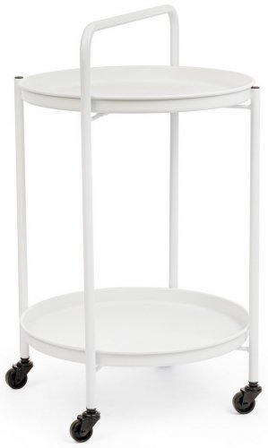 Сервировочный столик Austin Twin полностью сделан из стали с порошковым покрытием (полиэстер) для наружного использования (e-coating) с матовой отделкой. Ножки разборные. Съемные столешницы можно использовать в качестве подноса. Столик оснащен 4 колесами.