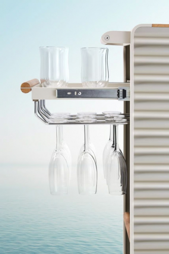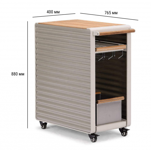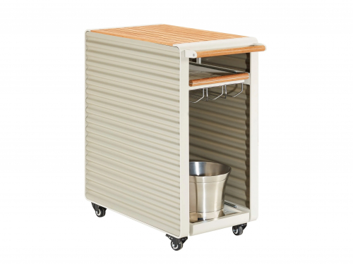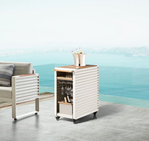 Особое внимание заслуживает сервировочная тележка - функциональный столик на поворотных колесах с алюминиевым каркасом, тиковой столешницей, телескопическими ящиками для хранения бутылок и охлаждающими контейнерами из нержавеющей стали. Это идеальное решение для тех, кто ценит мобильность, практичность и стиль, превращая летние вечера в истинное удовольствие от отдыха в хорошей компании.