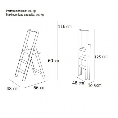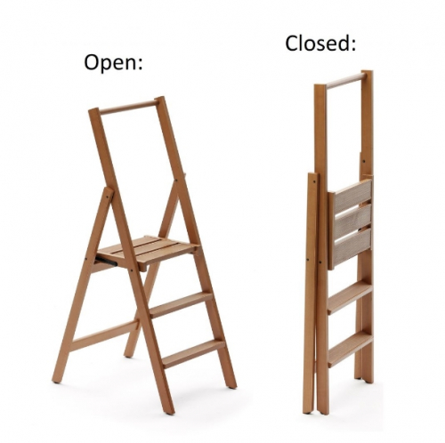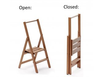 Изделие полностью изготовлено из массива бука, что гарантирует его прочность и долговечность. Ножки снабжены специальными резиновыми наконечниками, а ступени - противоскользящим покрытием. Широкая верхняя ступень обеспечивает вам устойчивое положение. Надёжная складная конструкция легко раскладывается, а в сложенном виде занимает минимум места.