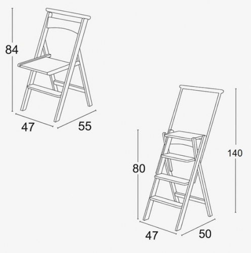 Стремянка-стул Eletta, наверное, одно из самых оригинальных дизайнерских решений от итальянской фабрики Arredamenti Italia (ARiT). Его без усилий можно превратить в стул или стремянку на четыре ступеньки с удобной выдвижной ручкой.
