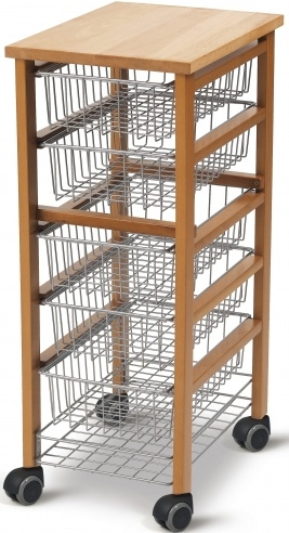 Кухонная тележка на колёсиках Oliver от итальянской фабрики Arredamenti Italia (ARiT) станет практичным предметом интерьера вашей кухни. Её каркас выполнен из массива бука, а металлические корзины покрыты специальным напылением. Они достаточно вместительны, чтобы хранить в них продукты и различную кухонную утварь. Встроенные резиновые колёсики с функцией анти-след придают изделию мобильность и дополнительное удобство.