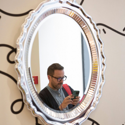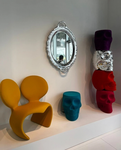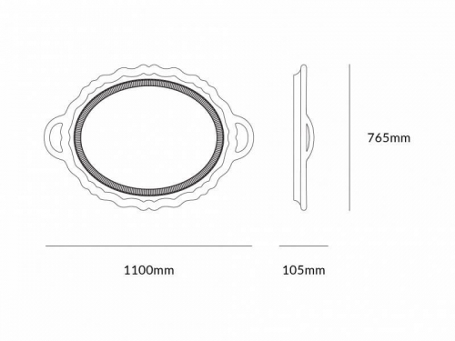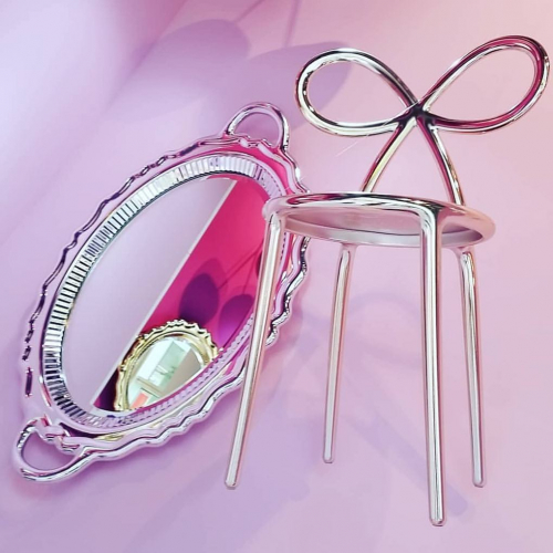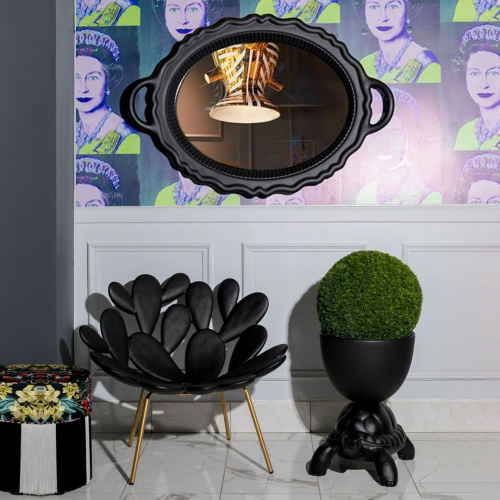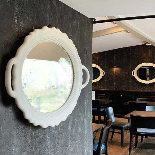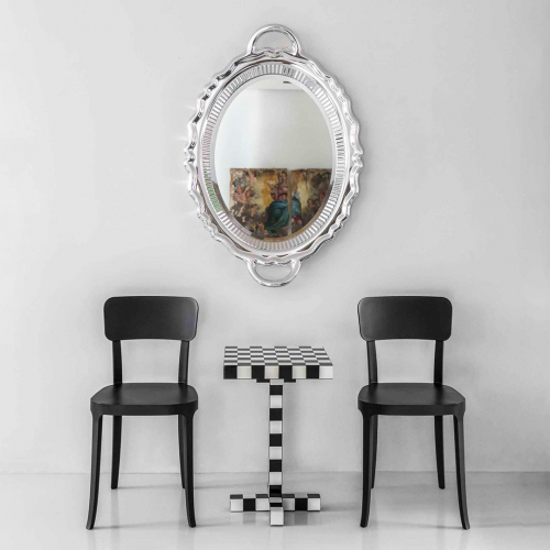 "Драгоценный серебряный поднос 17-го века, исторически используемый в качестве символа статуса, возрождается как пластмассовое литое зеркало. Хотя Miroir можно рассматривать как изделия из серебра 21-го века, качество, мастерство и детализация по-прежнему остаются неизменными".