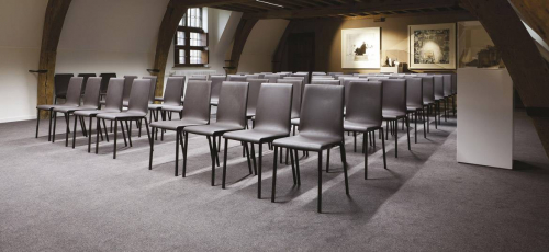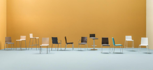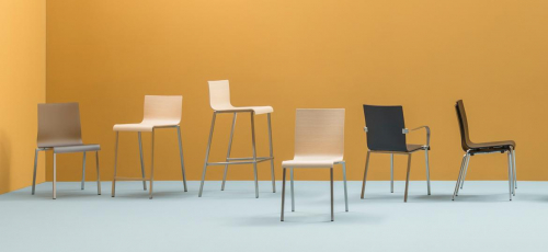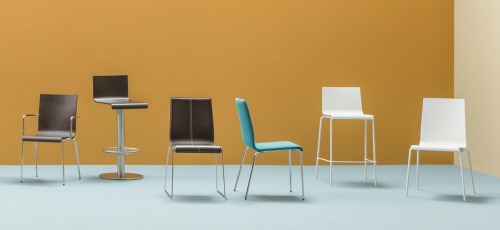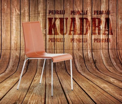 Очень простой и культовый каркас с инновационной изогнутой спинкой делают коллекцию Kuadra удобной и универсальной. В обивке используется крупная белая строчка, которая придает стулу изюминку. Данный тип кожи позволяет максимально долго использовать мебель. Особенно эффектно стулья будут смотреться в интерьере лофт. Данная модель штабелируется, что делает ее наиболее удобной в транспортировке и хранении.