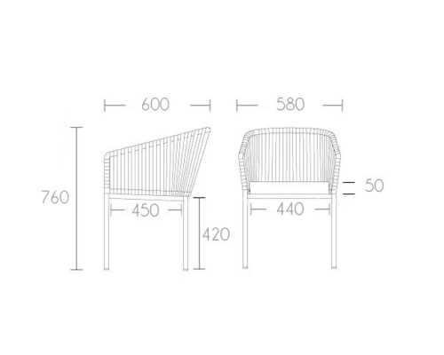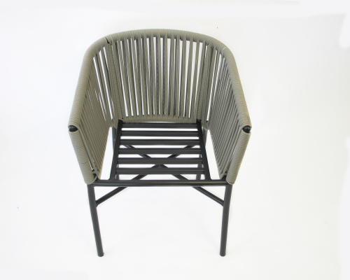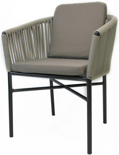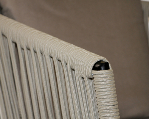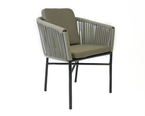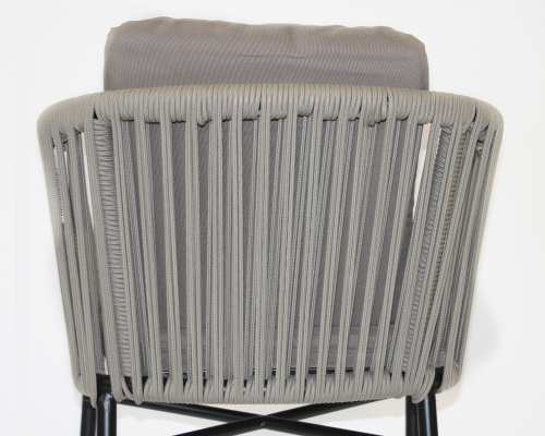 Уличное кресло с эргономичным и современным дизайном с алюминиевым каркасом и спинкой в плетении из роупа. Модель подходит для открытой террасы бара, ресторана, отеля или небольшого частного зимнего сада.