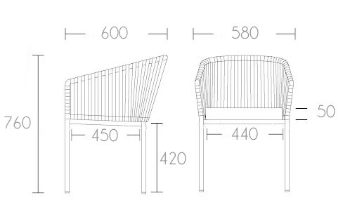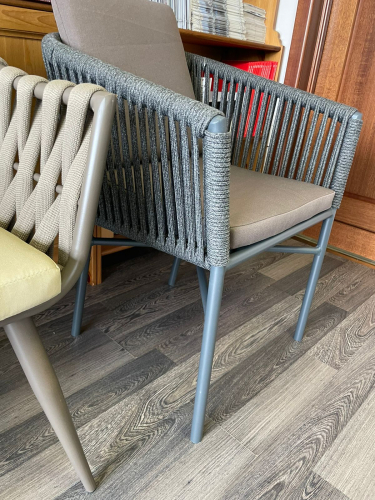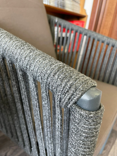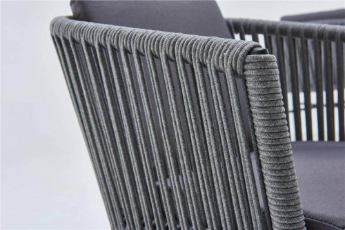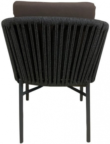 Уличное кресло с эргономичным и современным дизайном с алюминиевым каркасом и спинкой в плетении из роупа. Модель подходит для открытой террасы бара, ресторана, отеля или небольшого частного зимнего сада.