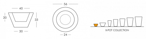 X-Pot - это коллекция красочных и минималистичных кашпо: их двойная стенка и круглое основание делают X-Pot идеальными для всех обстановок. Коллекция X-Pot доступна в разных размерах и поэтому идеально подходит для придания цвета или элегантности в частных садах или террасах или приветствовать гостей в отелях, ресторанах или магазинах.