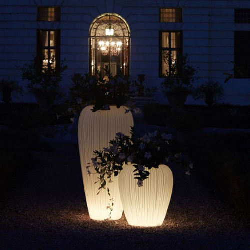 Декоративное светящееся кашпо Skin предназначено для использования в помещении и на улице. Коллекция кашпо с линейными формами, а их обаяние обеспечивается текстурой, вызывая желание прикоснуться к ним. Его эксклюзивная отделка черпает вдохновение в наблюдении за условиями, в которых живет природа, которые раскрывают детали и геометрию, кажущиеся невидимыми, но которые имеют значение: все имеет свою собственную кожу.