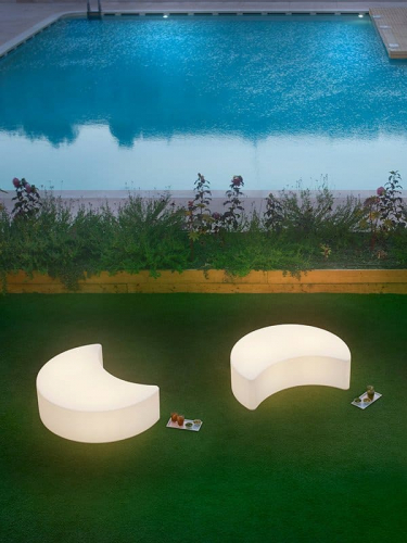Для создания сказочной атмосферы "Тысяча и одна ночь" Mone является неизбежным элементом мебели. Пуф в форме месяца, сделанный из полиэтилена и освещенный изнутри, позволяет украшать декоры, сады и террасы в романтическом и неформальном стиле: его простые и извилистые линии адаптируются к современным интерьерам сферы Contract, различным мероприятиям, розничной торговле и частным домам.