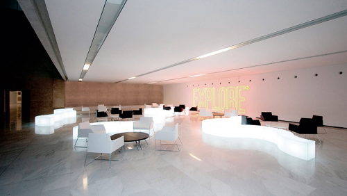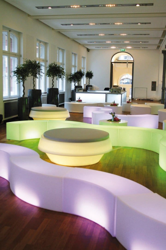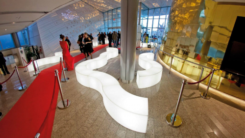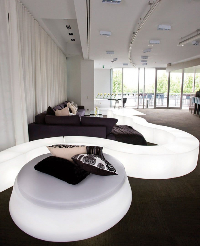 Модульная скамья Snake для использования в помещении. Изогнутая скамья придает изысканный и современный штрих любому пространству со всей её яркостью и линейным дизайном.