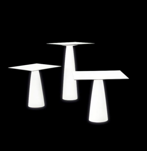 Таким образом, Marc Sadler создал коллекцию столов с изящной элегантностью, но неформальную в то же время. Возможно исполнение Hoplà в различных цветах, высотах и со столешницами разных форм, чтобы приспособиться к вкусам и потребностям каждой внутренней и наружной среды. Для создания элегантного света Hoplà также доступен в светящейся версии.