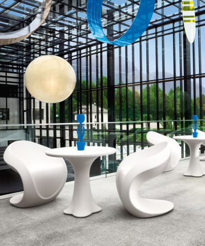 Мебель изготовлена из материала Polyeasy - новый пластиковый материал, запатентованный фабрикой Myyour. Он представляет собой линейный полиэтилен, в котором практически отсутствует поверхностная микропористость. Прочный, долговечный, моющийся материал, поверхность которого остается блестящей, а цвета - яркими с течением времени.
