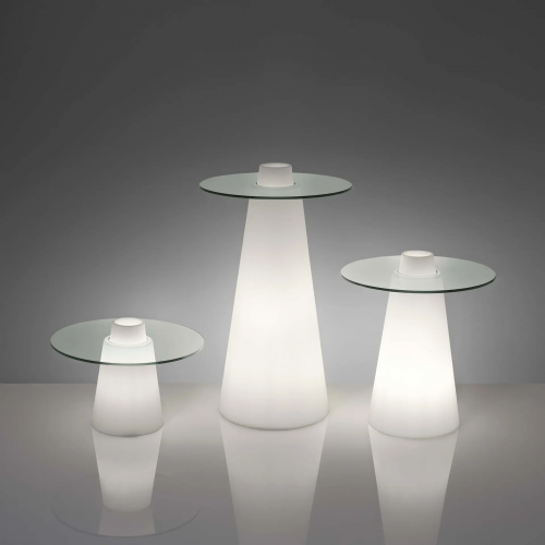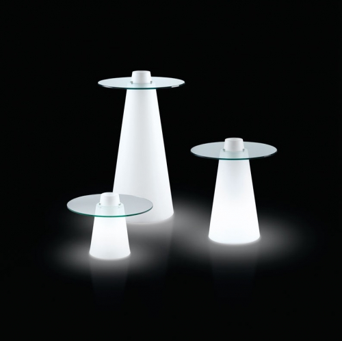 С Peak SLIDE предлагает эксцентричный яркий стол, спроектированный дизайнерами Aksu и Suardi. В версии высотой 500 мм Peak представляет собой чрезвычайно линейный стол с конической формой, подстольем из полиэтилена и круглой или квадратной стеклянной столешницей разных размеров. Особенностью столов Peak является центральное отделение для бутылок, которое делает их уникальными. Peak создает волшебную атмосферу благодаря тонкому свету, исходящему от подстолья.