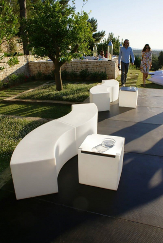 Kubo - практичный и элегантный стол, который исходит от переосмысления классического Cubo. В отличие от бестселлера, полностью изготовленного из яркого полиэтилена и используемого в качестве пуфа, Kubo дополнен столешницей из нержавеющей стали, превращаясь, таким образом, в устойчивый стол, который не лишен элегантности и одновременно яркости.