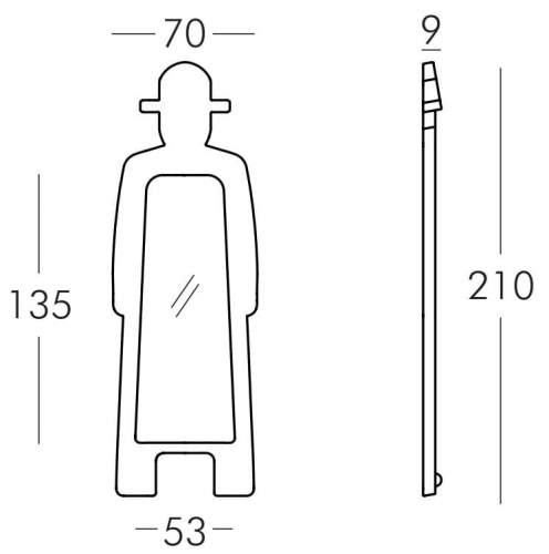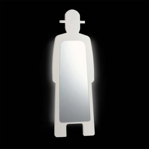 Mr. Gio Specchio - необычное зеркало, разработанное Giò Colonna Romano. Mr. Gio Specchio - это дерзкая и ироничная скульптура, форма которой напоминает человека в шляпе с большим зеркалом посередине. Mr. Gio Specchio изготовлено из полиэтилена по технологии ротационного формования: это зеркало - необходимый домашний аксессуар; благодаря своей необычной форме оно идеально подходит для забавного украшения ванной комнаты или спальни.