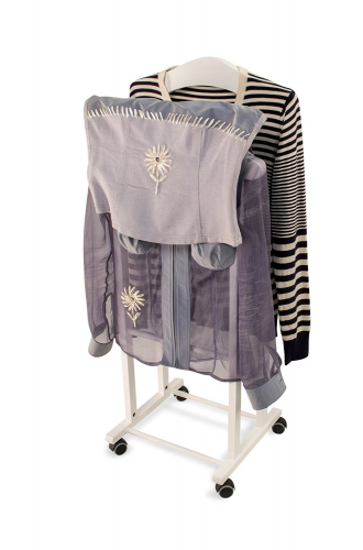 Встроенные колёсики с функцией анти-след делают вешалку очень мобильной. Её каркас изготовлен из прочного и долговечного массива бука. Белый универсальный цвет отлично впишется в различные интерьеры привнесёт нотки элегантности и экологичности.