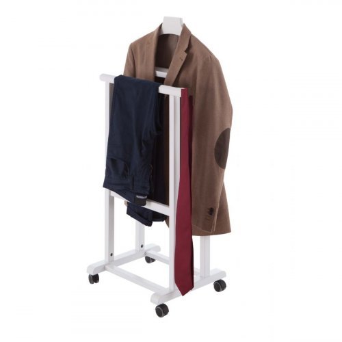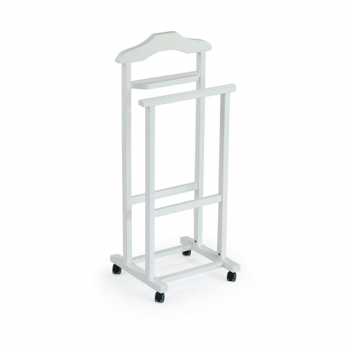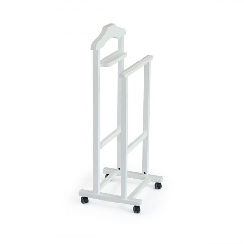 Она имеет всё необходимое: плечики для пиджаков и рубашек, перекладину для брюк и полочку для мелочей и аксессуаров. Встроенные колёсики с функцией анти-след позволяют легко перемещать изделие, при этом не повреждая покрытие пола. Каркас вешалки изготовлен из высококачественного массива бука, который отличается высокой прочностью и долговечностью.