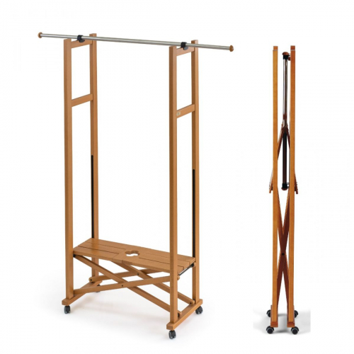 Её каркас изготовлен из массива бука и дополнен стальной перекладиной и полкой для сумок. Колёсики с функцией анти-след позволяют с лёгкостью перемещать изделие, куда вам нужно. Особенно удобно то, что вы можете разложить её до необходимой длины, а затем сложить за ненадобностью. Вешалка для одежды Elios займёт достойное место в интерьере спальни или гардеробной, добавит в него элегантности и экологичности.