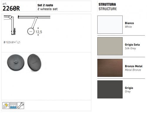 Комплект колёс для шезлонга Bahia. Bahia - коллекция шезлонгов и приставных столиков, идеально подходящих для площадок у бассейна или пляжей. Мебель этой коллекции подходит для использования в помещении и на открытом воздухе. Изделия предназначены также для морской среды, заполненной солевым туманом, и для бассейна при наличии хлора.
