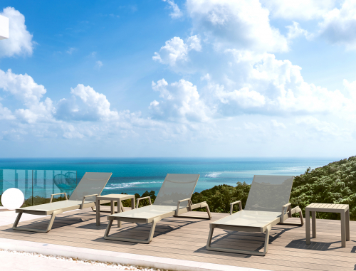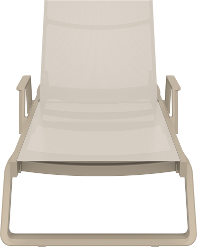 Модель Tropic сочетает в себе несколько материалов: каркас из алюминия, ножки из стеклопластика, покрытие из текстилена. Объединенные вместе, они создают очень прочный, функциональный, легкий и штабелируемый шезлонг. Он гармонично впишется в любое открытое пространство, идеально подойдет для зоны возле бассейна или пляжного пространства. Пластичный текстилен Sergе Ferrari, повторяющий линии тела, и 5 положений наклона спинки обеспечивают максимальное расслабление и наслаждение отдыхом. Удобная ручка на спинке и встроенные в ножки небольшие колеса гарантируют легкое передвижение, а возможность штабелирования - простое хранение.
