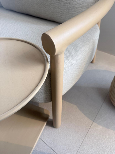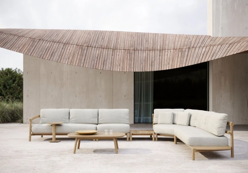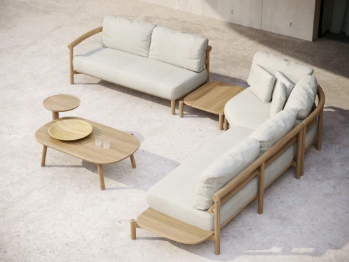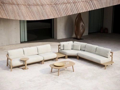 Конструкция, полностью выполненная из тикового дерева, украшена тонкой отделкой, что максимально повышает ее функциональность и эргономичность. Коллекция Lyora представлена креслами, а также двухместными и трехместными диванами компактных размеров и модульными конструкциями с обволакивающими линиями.