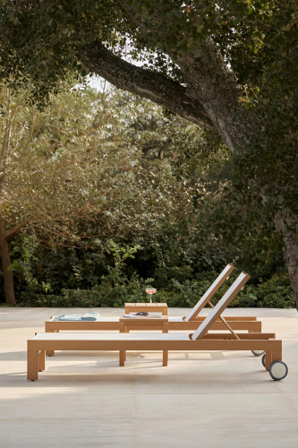 В Kahn использовали TechTeak, новый технологичный материал из тикового дерева, который обладает способностью воспроизводить теплый, естественный вид тика, но при этом обладает существенным преимуществом - не требует технического обслуживания. Каждый предмет коллекции разработан таким образом, чтобы выдерживать суровые условия самых сложных проектов сферы Contract, обеспечивая идеальное решение для пространств, где требуется прочная и высококачественная мебель. Кроме того, в конце своего жизненного цикла он на 100% пригоден для вторичной переработки, что подтверждает приверженность экологичности компании.