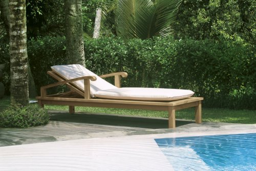 Лежак Saint Laurent из массива погодостойкой древесины тика подходит для бассейнов, пляжей и садов. Легко регулируемая функциональная спинка может настраиваться для достижения максимального комфорта, колеса позволяют легко перемещать шезлонг. Близко расположенные ламели придают большую солидность и позволяют использовать лежак при полном расслаблении даже без матраса.