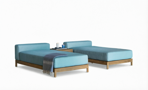 Деревянный лежак Barcode из тика с матрасом и мягким подголовником. Barcode - коллекция модулей со структурой из массива тика (сертификат FSC) и мягкими элементами, которые так же доступны со стеганым чехлом. Спинка и подлокотники с внутренней структурой из дерева окуме для использования на открытом воздухе и из ели для использования в помещении. Вы можете создавать композиции, сочетая элементы с различной глубиной.
